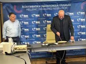Σε οικογενειακό κλίμα και σε μια ζεστή εκδήλωση, το μεσημέρι της Τετάρτης (14/1), στην αίθουσα συνεδριάσεων του ΔΣ, η Κολυμβητική Ομοσπονδία Ελλάδας έκοψε την καθιερωμένη πρωτοχρονιάτικη πίτα της για το προσωπικό και τα στελέχη της.