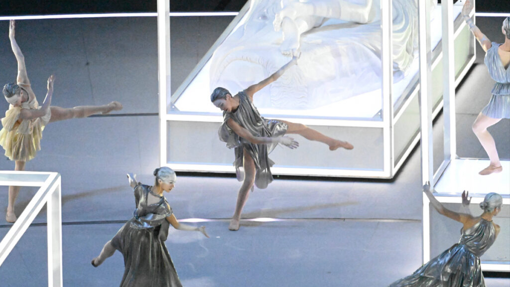 Τα πρώτα μέρη της τελετής περιλάμβαναν επίσης τον φόρο τιμής στον εκλιπόντα Ιταλό σχεδιαστή μόδας Τζόρτζιο Αρμάνι, ο οποίος είχε ως βάση του το Μιλάνο και απεβίωσε τον περασμένο Σεπτέμβριο.
