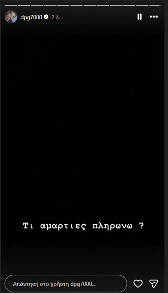 Ο ισχυρός άνδρας του συλλόγου ανέβασε story στον προσωπικό του λογαριασμό στο Instagram, με μαύρο φόντο και τη χαρακτηριστική φράση: «Τι αμαρτίες πληρώνω;».