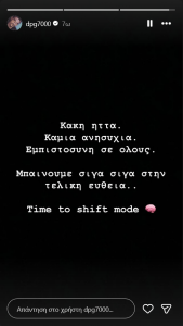 «Κακή ήττα. Καμία ανησυχία. Εμπιστοσύνη σε όλους. Μπαίνουμε σιγά σιγά στην τελική ευθεία. Time to shift mode», ανέφερε χαρακτηριστικά στο μήνυμά του.