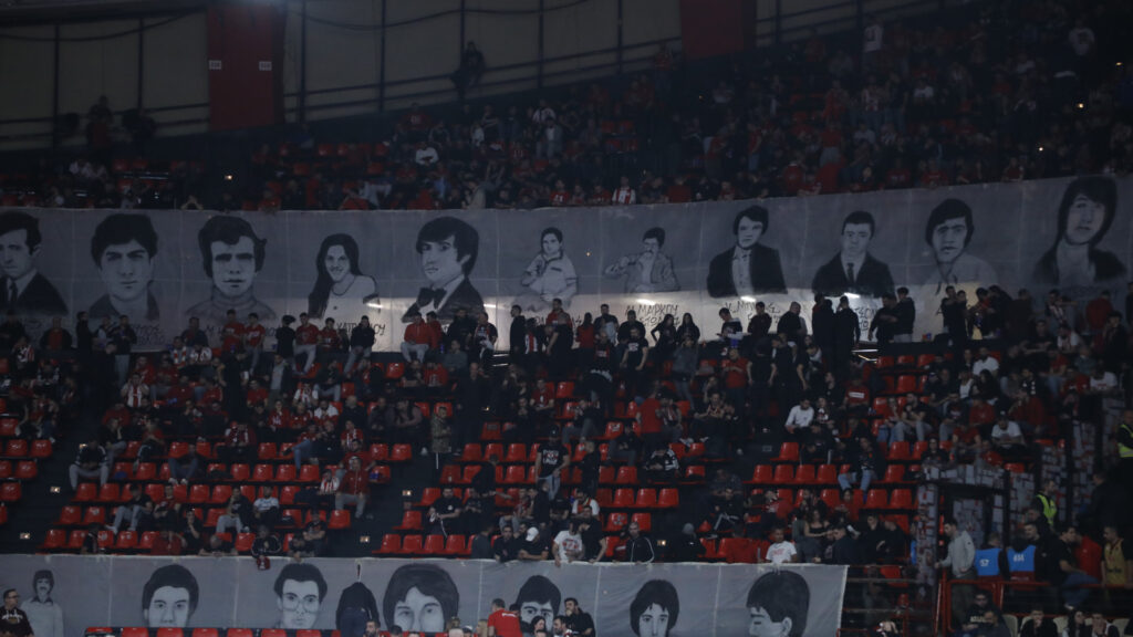Στο περιθώριο της αναμέτρησης με τη Βίρτους Μπολόνια στο ΣΕΦ, για την 27η αγωνιστική της Euroleague, σύσσωμη η οικογένεια της ΚΑΕ Ολυμπιακός τίμησε τη μνήμη των θυμάτων της Θύρας 7.