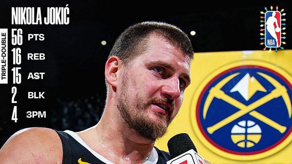 Ο Σέρβος σέντερ πραγματοποίησε μία από τις κορυφαίες εμφανίσεις της καριέρας του, ολοκληρώνοντας το ματς με μυθικό triple-double 56 πόντων, 16 ριμπάουντ και 15 ασίστ, οδηγώντας τους Νάγκετς στο 22-8. Άξιος συμπαραστάτης του ήταν ο Τζαμάλ Μάρεϊ με 35 πόντους και 10 ασίστ. Για τη Μινεσότα, που έπεσε στο 20-11, ξεχώρισε ο Άντονι Έντουαρντς με 44 πόντους, ενώ ο Τζούλιους Ραντλ πρόσθεσε 32.