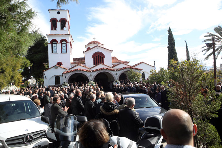 Η τελετή πραγματοποιήθηκε στον Ιερό Ναό Παναγίας Θεοτόκου στο Χαϊδάρι, όπου συγγενείς, φίλοι και άνθρωποι του αθλητισμού συγκεντρώθηκαν για να αποτίσουν φόρο τιμής
