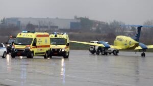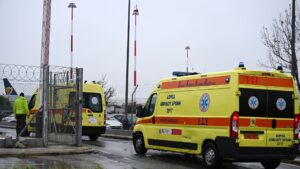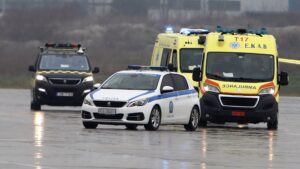 Δείτε εικόνες από το αεροδρόμιο με την μεταφορά των δύο τραυματιών στο νοσοκομείο Παπαγεωργίου: