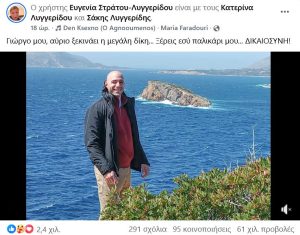 Η Ευγενία Στράτου-Λυγγερίδου, μητέρα του αδικοχαμένου Γιώργου Λυγγερίδη, με αφορμή την σημερινή επανέναρξη της δίκης για την δολοφονία του παιδιού της, ανέβασε στα social media ένα βίντεο με φωτογραφίες και το μήνυμά της: «Γιώργο μου, αύριο (σήμερα) ξεκινάει η μεγάλη δίκη… Ξέρεις εσύ παλικάρι μου. ΔΙΚΑΙΟΣΥΝΗ!».