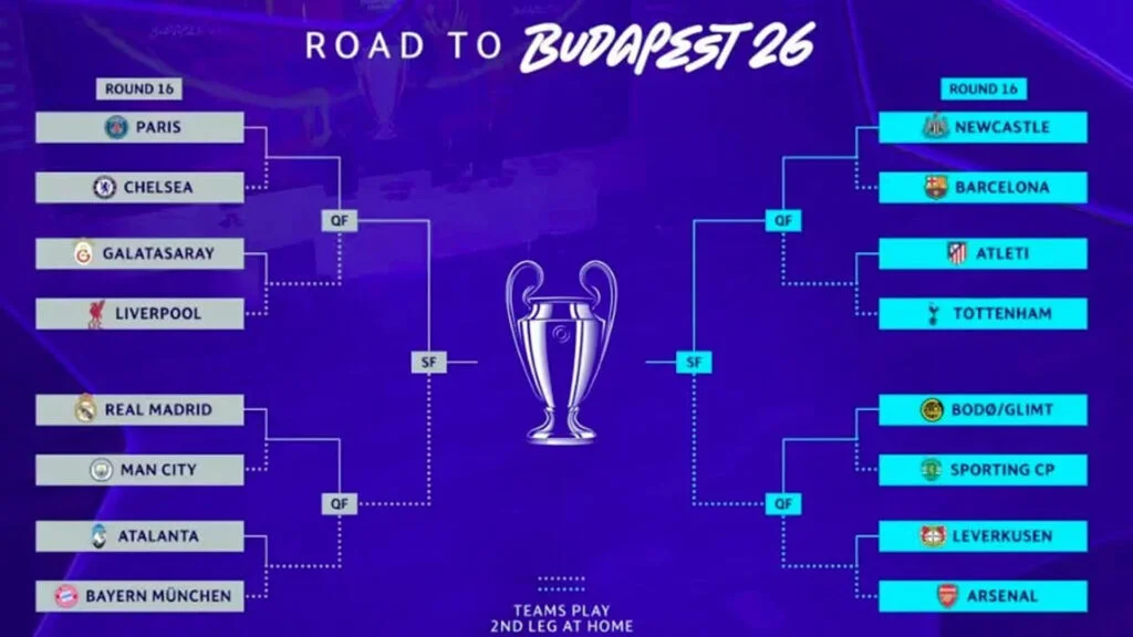 Στο Champions League στην φάση των «16» θα δώσουν το παρών έξι αγγλικές ομάδες εκ των οποίων οι 5 κατάφεραν να προκριθούν απευθείας τερματίζοντας στην πρώτη οχτάδα της League Phase. Ο λόγος για Άρσεναλ, Μάντσεστερ Σίτι, Λίβερπουλ, Τσέλσι και Τοτέναμ. Η Νιουκάστλ χρειάστηκε να περάσει από την ενδιάμεση φάση νοκ-αουτ της κορυφαίας ευρωπαϊκής διασυλλογικής διοργάνωσης ξεπερνώντας  με σχετική ευκολία το εμπόδιο της Καραμπάχ.