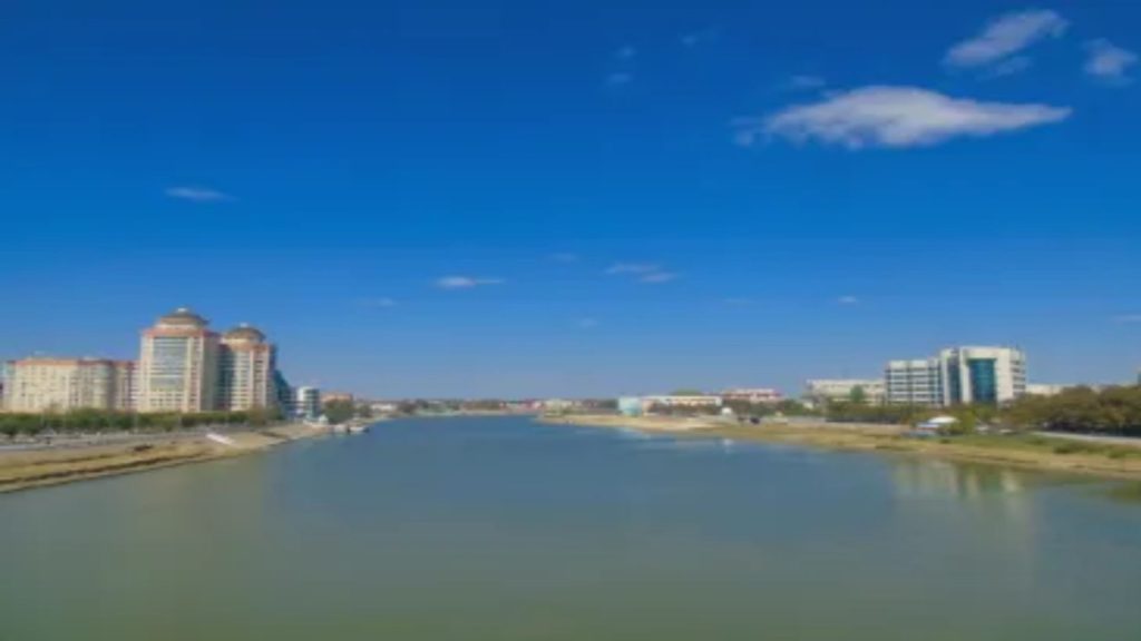 Ο ποταμός Ουράλης περνά μέσα από το Ατυράου και το χωρίζει σε Ασία στα δεξιά και σε Ευρώπη στα αριστερά.