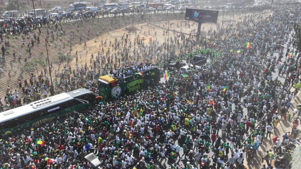 «Το επόμενο βήμα είναι το Παγκόσμιο Κύπελλο. Με τον Σαντιό Μανέ στην ομάδα, τίποτα δεν είναι αδύνατο», φώναζαν ενθουσιασμένοι υποστηρικτές, στρέφοντας ήδη το βλέμμα τους στο Μουντιάλ του 2026, που θα διεξαχθεί το επόμενο καλοκαίρι σε Ηνωμένες Πολιτείες, Μεξικό και Καναδά.