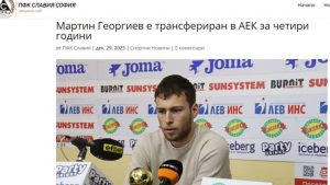 Η Σλάβια Σόφιας ανακοίνωσε επίσημα τη μεταγραφή του Μάρτιν Γκεοργίεφ στην ΑΕΚ, αναφέροντας τα εξής: