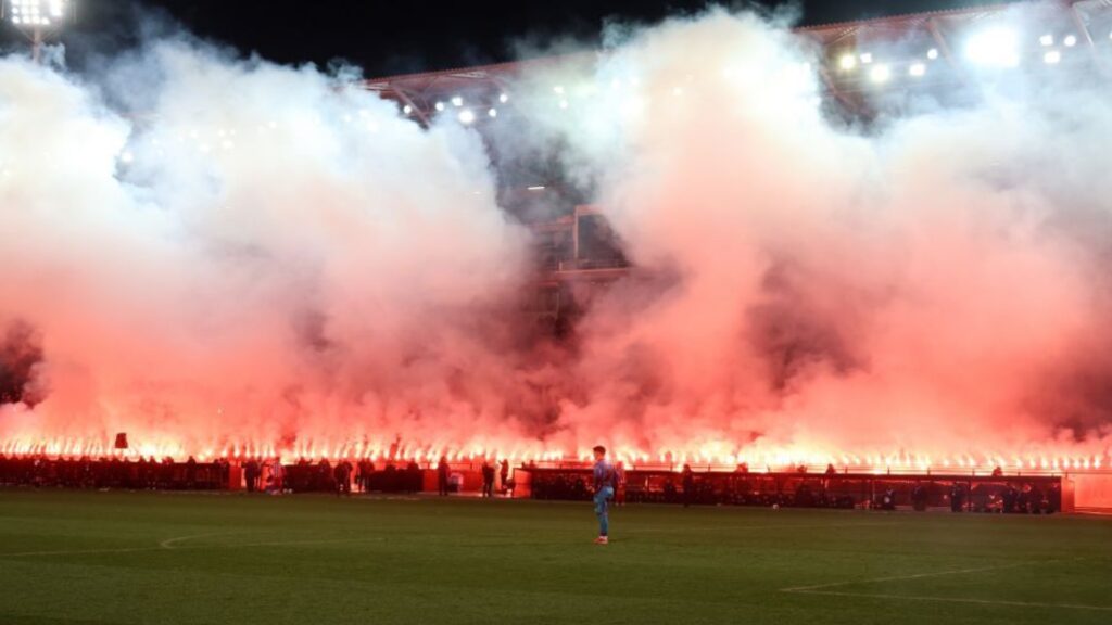 Στο 27΄ κι ενώ το ματς βρίσκεται στο 4-1, οι φίλαθλοι του ΠΑΟΚ ανάβουν πάρα πολλά καπνογόνα στις κερκίδες της Τούμπας, έκαναν τη νύχτα μέρα, το ματς διακόπηκε προσωρινά και όλοι είπαν το πικρό «αντίο» στα παιδιά που χάθηκαν…