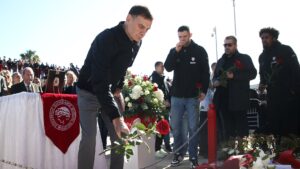 Τελείται επιμνημόσυνη δέηση στο μνημείο της Θύρας 7 (βρίσκεται έξω από το στάδιο Καραΐσκάκη) με την παρουσία παραγόντων της ομάδας, ποδοσφαιριστών, αλλά και με παρουσία χιλιάδων φιλάθλων της ομάδας.