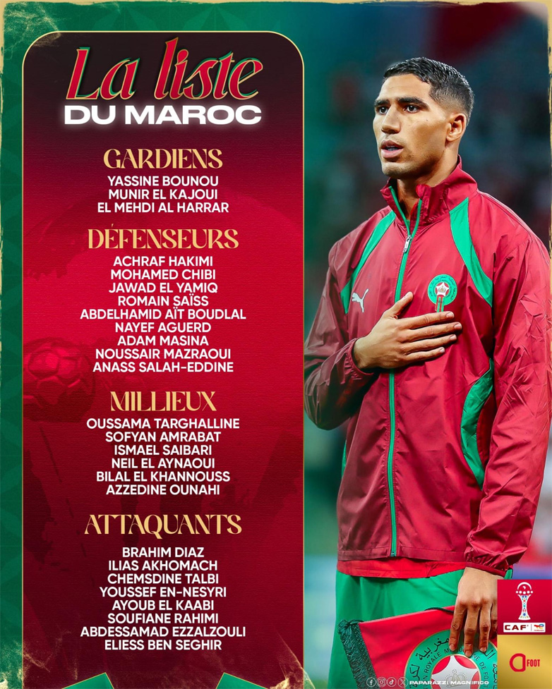 Ανακοινώθηκε την Πέμπτη η αποστολή της Εθνικής Μαρόκου για το Κύπελλο Εθνών Αφρικής, στην οποία συμπεριελήφθη, όπως αναμενόταν, ο Αγιούμπ Ελ Κααμπι.