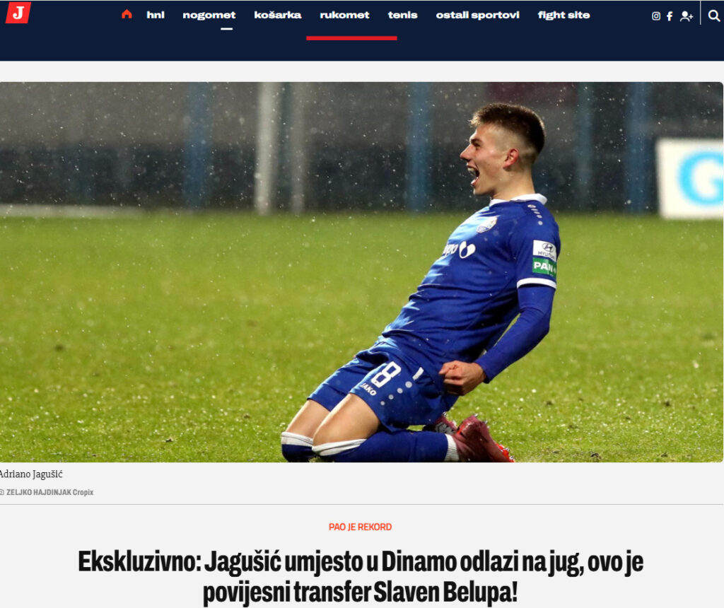 Tο δημοσίευμα της jutarnji που αναφέρει “Αποκλειστικό: Ο Γιάγκουσιτς πάει νότια αντί για τη Ντιναμό, αυτή είναι μια ιστορική μεταγραφή για τον Σλάβεν Μπελούπο!”