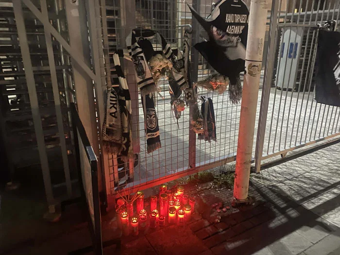 Ο Ραζβάν Λουτσέσκου και μέλη του αγωνιστικού, προπονητικού και διοικητικού επιτελείου του ΠΑΟΚ, προσήλθαν ήδη για να ανάψουν ένα κερί στη μνήμη των θυμάτων, στο αυτοσχέδιο μνημείο που έχει δημιουργηθεί έξω από το γήπεδο της Τούμπας.
