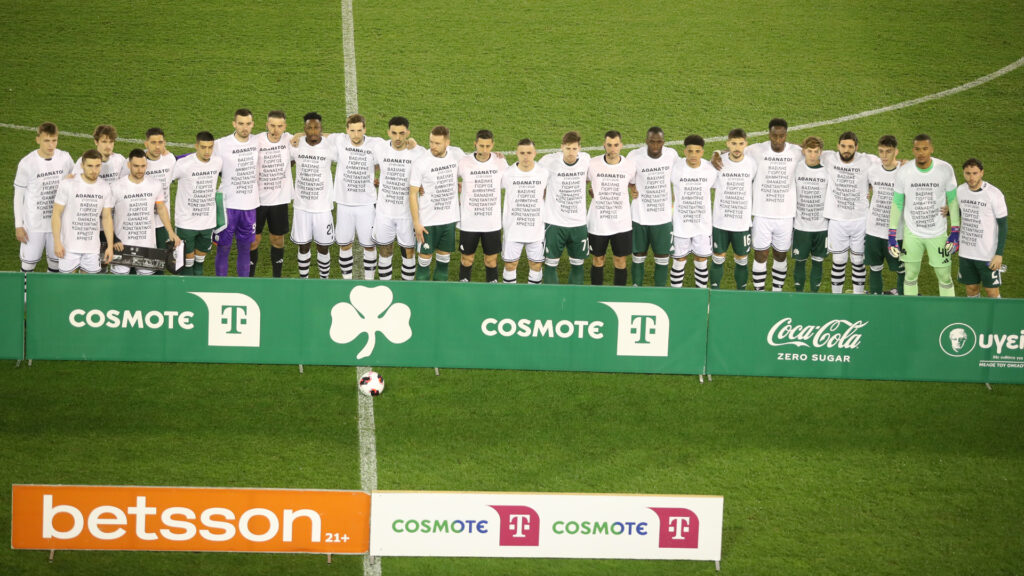 Οι δύο ομάδες και το διαιτητικό τρίο μπήκαν στο γήπεδο φορώντας όλοι μπλουζάκια με τα ονόματα των αδικοχαμένων φιλάθλων του ΠΑΟΚ