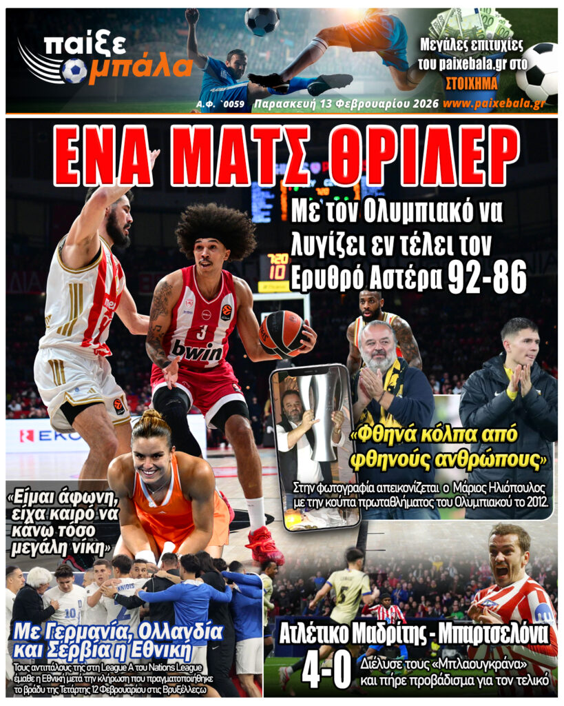 Παρασκευή, 13 Φεβρουαρίου 2026