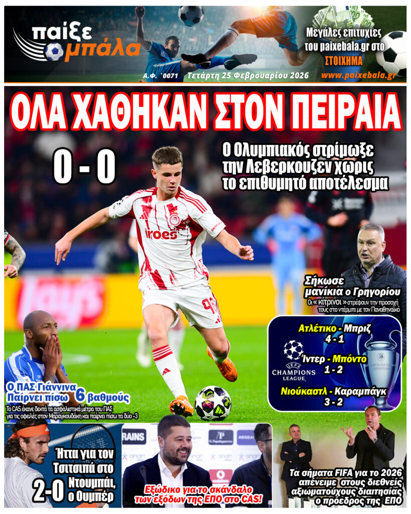 Τετάρτη, 25 Φεβρουαρίου 2026